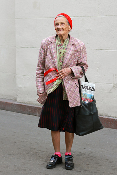 Я 4 года как на пенсии, работала до 80-ти лет каждый день. Одеваться мне теперь не нужно на работу, как раньше. Нам ведь полагалось. Мой стиль - это никакой стиль. Я ничего не покупаю нового, более того, я не хожу ни в какие магазины и бутики. Не потому что я против, а потому что мне ничего не надо, у меня всё есть. Более того, я недавно отдала 7 больших мешков барахла. Там были юбки, кофты, шапки, шарфы, колготки, безумное количество вещей, которые я не ношу уже. Такие тяжелые мешки были. Пришли мальчики, забрали, дали мне премию - 200 рублей на мобильный. После этого мне по какой-то причине нужно было шкаф разобрать. И когда я залезла в него, я увидела, что опять там лежат какие-то кофты, какие-то свитера, шапки, которые я не ношу.